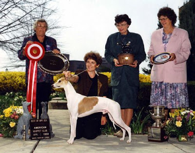 Nacido en 1988 engendró 72 campeones, 5 BIS Winers en cuatro continentes, 6 Field Champions. En 1992 tan solo se exhibió 12 veces y consiguió rápido el campeonato americano y multiples Specialty Best in Shows, fue Top Ten 1992, AWC National Specialty 1992, Mejor progenitor en AWC Nacional Especialidad – 1993, 1994, 1998.