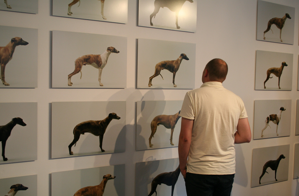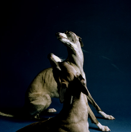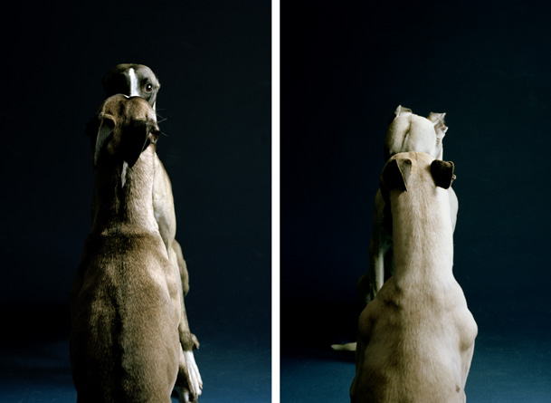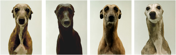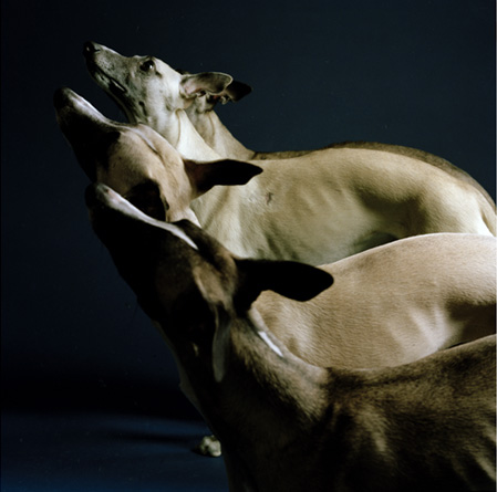 Comenta que «Durante varios años he estado trabajando con los mejores criadores, fotografiar a sus perros por la línea de sangre, la exploración de su búsqueda obsesiva del« perro perfecto «. Como parte de mi proceso de trabajo que utiliza gran variedad de tecnologías fotográficas para registrar y controlar retratos humanos, incluidas las tecnologías del estado del arte y los ya considerados obsoletos, tales como cámaras estereoscópicas. El respaldo al trabajo es una exploración del efecto de ver y ser visto. Mi estudio del Whippet pone en primer plano la relación íntima entre el hombre y animal, y la creciente importancia de las tecnologías fotográficas en el desarrollo de la identidad humana. a pesar de que los perros son los que fotografío, las preguntas que me hago siempre son específicas a la pregunta de qué es ser humano.«