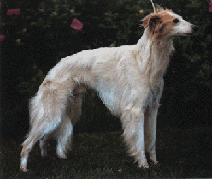 | Imagen de un Borzoi junto a un pequeño Silken Windhound |