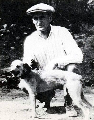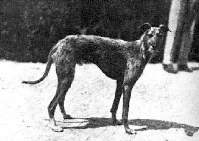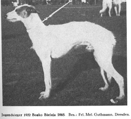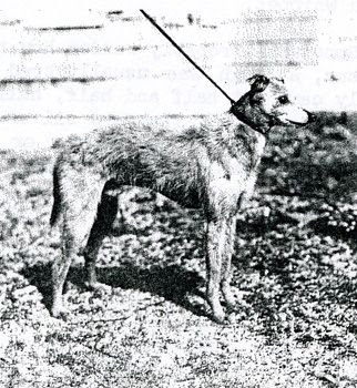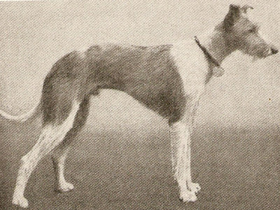 | Leyenda original de la foto: Rauhhaar-Whippet Primus Sagitta – Zuchter, Dr. Martin, Bin-Baumschuienweg -1925 |