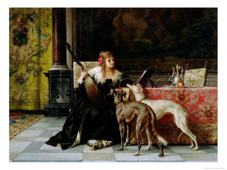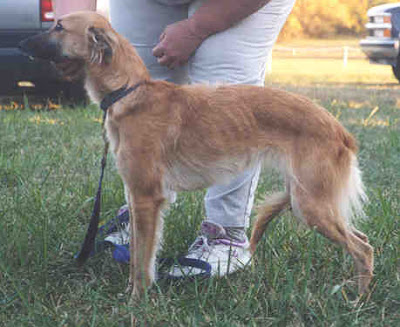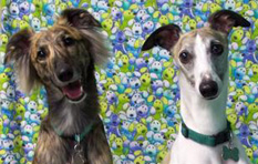 | Representación de dos lebreles medianos, uno de ellos de pelo semilargo |
