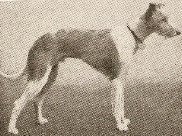 | Leyenda original de la foto: Rauhhaar-Whippet Verbands-Champion Bahnfrei v.d. Friedrich Alfred Hutte – 1920 |