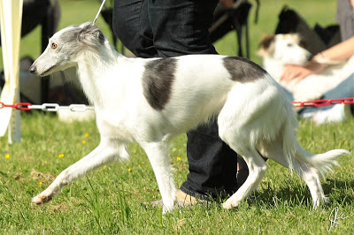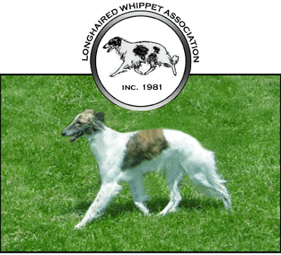 | Logotipo y uno de los ejemplares de la asociación Longhaired Whippet |