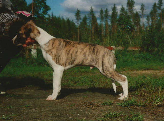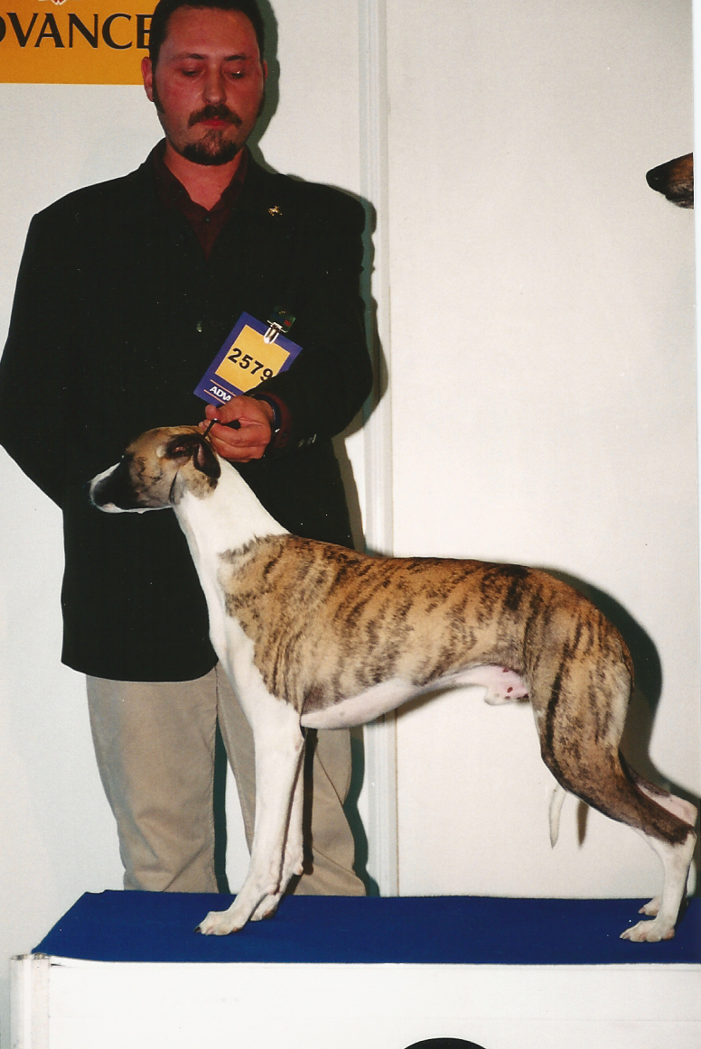 Nació el 27 de Julio de 1998, «Larry» como asi lo llamabamos en casa fue importado de Finlandia. Cuando los criadores me enviarón la foto de Larry con dos meses me encantó su línea y decidí traerlo a España. Consiguió el campeonato joven de Luxemburgo y el campeonato de España pero no era muy amigo de las exposiciones, era más de correr libre y a sus anchas por el campo, asi que decidimos que su sitio era estar en casa con sus amigos. Fué una pena cuando con solo 6 años murió poco después de su compañera «Brooke», el no tenía leishmania, tan solo una mañana no despertó. Recuerdo su carácter dulce y vivo que tenía y el apego que procesaba a sus hijos y a su compañera.