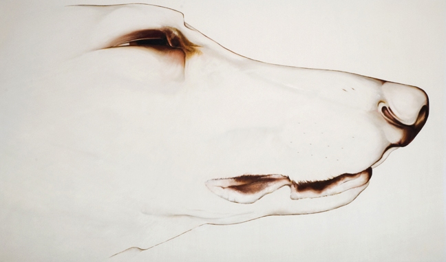 Canright primero tomó el galgo como sujeto después de la muerte del suyo en la primavera de 2000. Como suele ser el caso, lo que comenzó como una actividad personal, impulsiva en el estudio, en su caso, era de luto, se convirtió rápidamente en un cuerpo rico y poético de la obra. El galgo marco de la musculatura tensa y fuerte es potente y aerodinámico, han sido criados para la funcionalidad y la velocidad. En las imágenes de Canright, sin embargo, los cuerpos de los perros forman curvas lánguidas y contorsiones retorcidas que sugieren la inactividad, o aún más, la disfunción o la muerte. Al igual que las composiciones se han de entender tanto en sentido literal y abstracto, los propios perros al mismo tiempo indican la fuerza y la debilidad, el descanso y la agitación, la vitalidad y la mortalidad. Vistos ya sea como compañero humano o humano suplente, los animales encarnan muy bien tanto a nuestros mayores alegrías y nuestras más profundas angustias.
