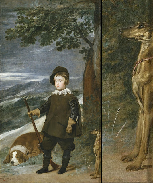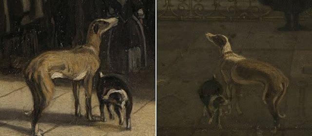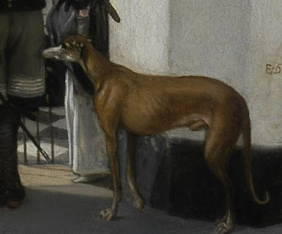| Detalle donde se ve claramente un lebrel pelo liso de talla pequeña o mediana |