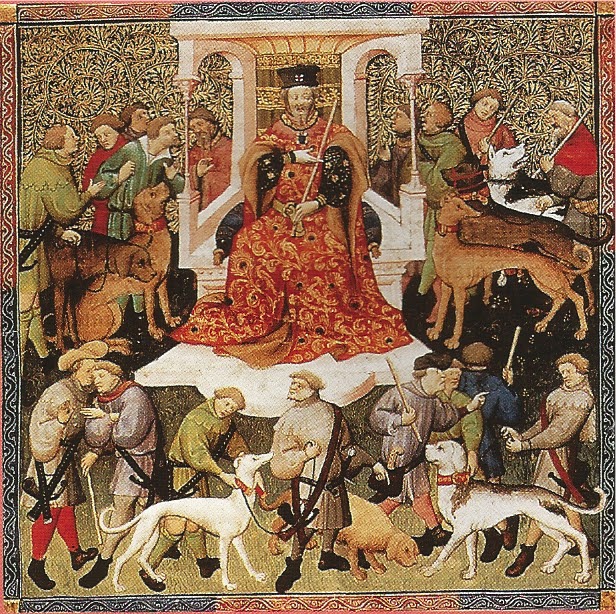 | Perros cazadores en la corte – Arte francés hacía 1405 |