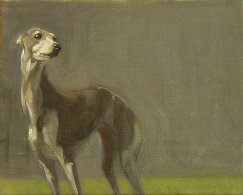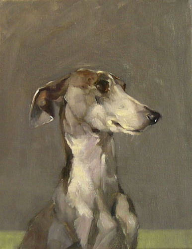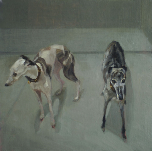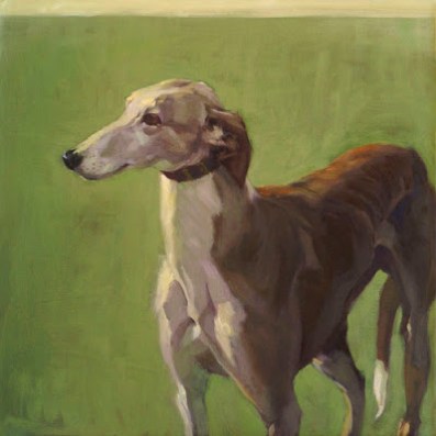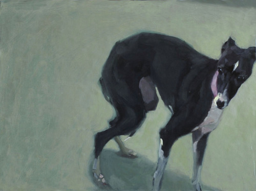 Se involucró realmente en la pintura de los animales desde que murieron sus dos perros ya muy viejos y probablemente va a continuar con ese tema mediante la incorporación de animales y personas en el trabajo.