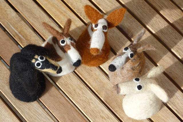 También, fieltros «Filzitos» (Eierwärmer) de galgos diversos y otras razas.