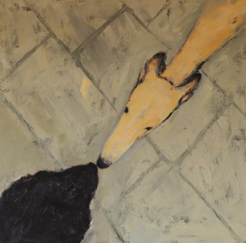 | Gelber Windhundkopf, Acryl auf Leinwand |
