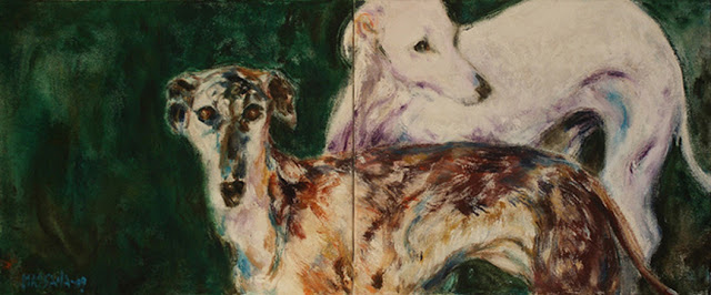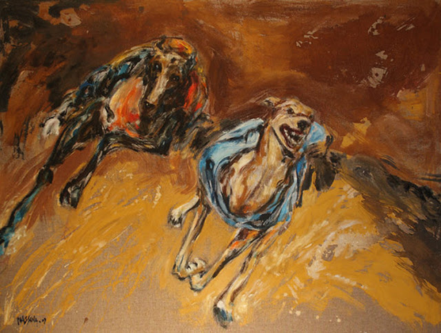 Según sus palabras «Tengo afinidades emocionales, en la pintura Francis Bacon y todo el Expresionismo alemán, y en literatura, empecé con Rilke, pero está Eliot, Wallace Stevens, hay muchos a los que amo. Pero no es que me influencien, es que el lenguaje es siempre una evolución». A pesar de solo ofreceros su obra relacionada con los galgos el resto de sus trabajos merecen un reconocimiento internacional, como así está siendo.