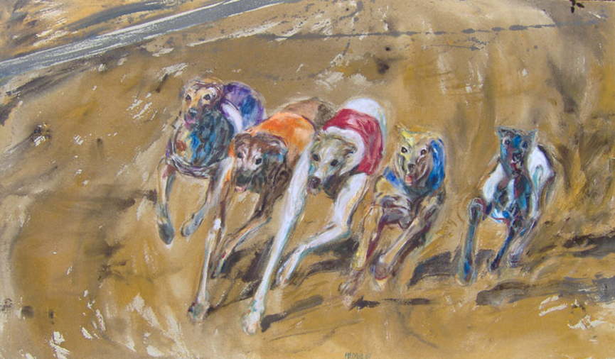 | Canódromo 1 – 130×97 cm. – Óleo sobre tela y pigmentos |