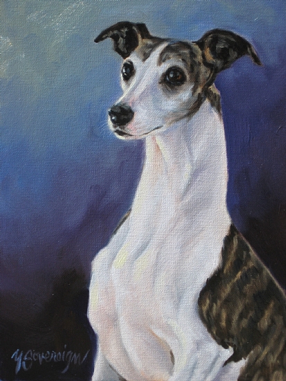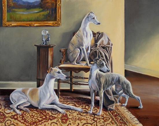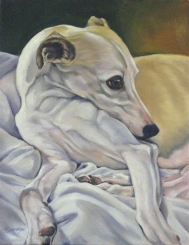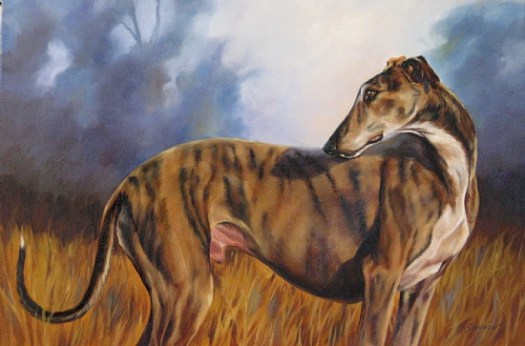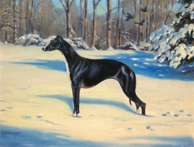En este pequeño recorte de sus obras solo muestro los relacionados con whippets o galgos pero trabaja con más razas y podeis ver toda su obra en la págiana web oficial: yvonnesovereign.com