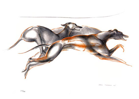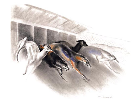 | Racing Greyhounds And A Greyhound Pursuing A Hare |