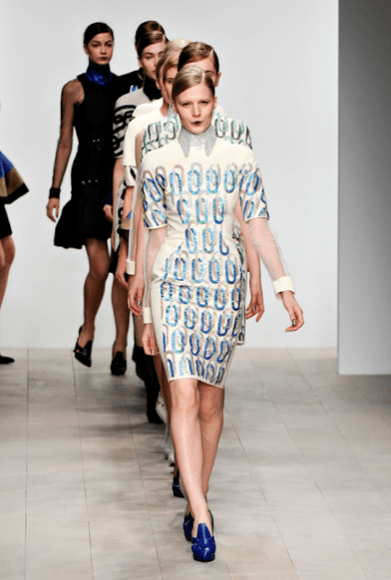 | En la pasarela con los diseños de David Koma y Alain Quillici |