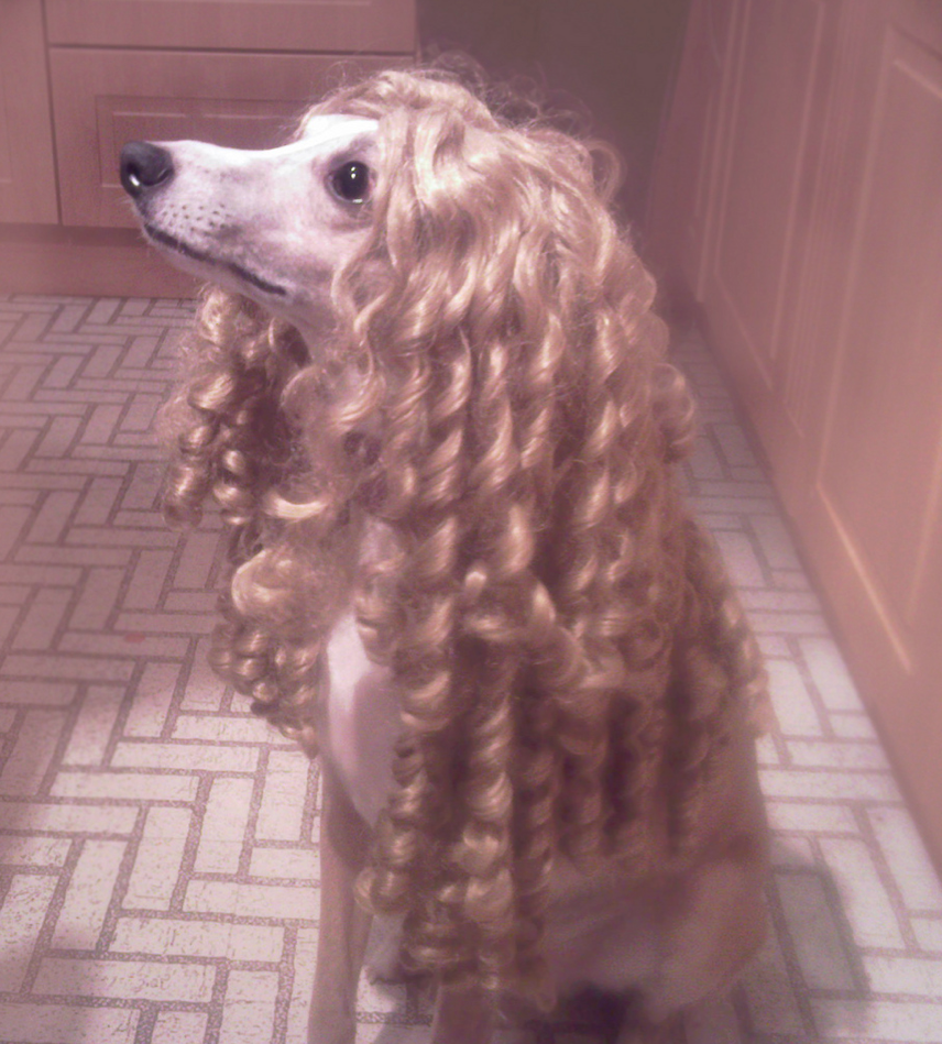En fin, que nos gusta un día de fiesta, y más si podemos cambiar nuestro rol o usar personalidades diferentes. Si eso nos place a nosotros ¿como no ibamos a transmitir ese mismo placer a nuestras mascotas?, ¿como evitar la tentación de poder ver a nuestro compañero de esa guisa?. Pocos, creo yo, no han caido en la tentación de ponerle una peluca a su perro, unas alitas, un sombrerito, etc…. Que divertido. Que expresiones tienen así. Nos encanta, y aqui os dejo algunos de los que, como yo, no ha resistido esa tentación y han usado pelucas, peluquitas y pelucones.