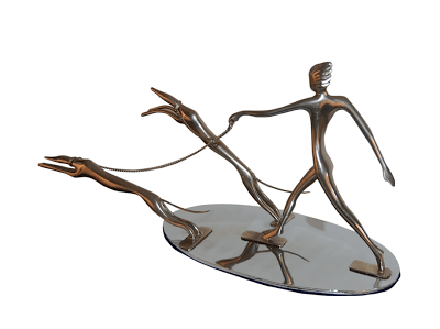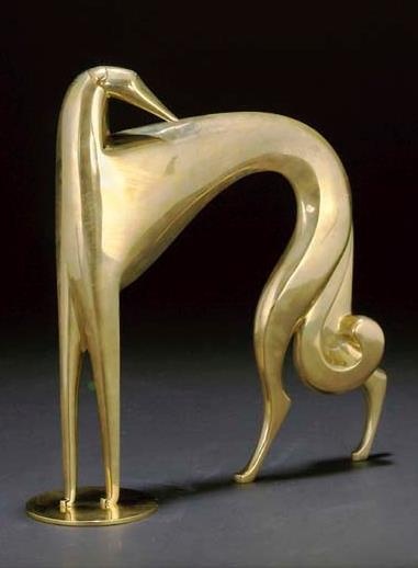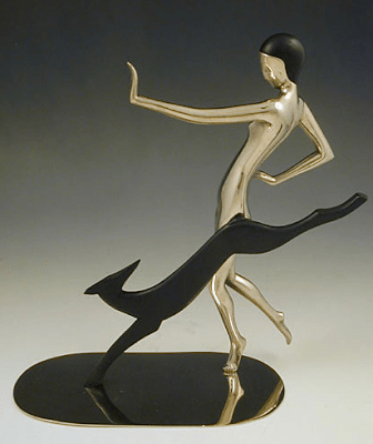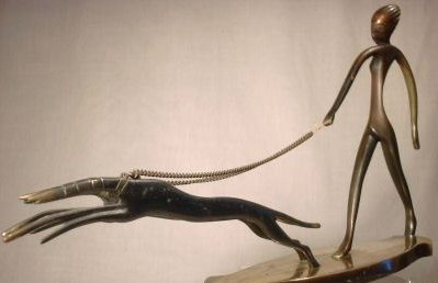 Mujer con Greyhound…., realmente son dos galgos. Me encantan las reproducciones en madera y el windhoun. Por cierto, hace poco descubri un juego de sillas de haya curvada hechas por Josef Hofmmann…,fue un momento mágico.