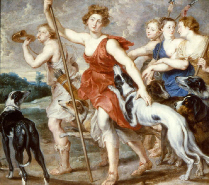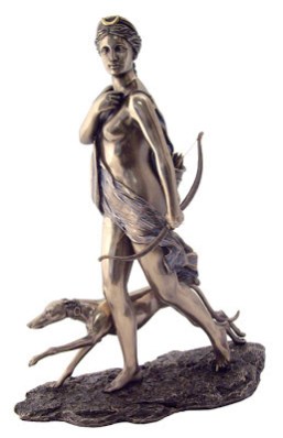 En la mitología romana, Diana era la diosa virgen de la caza y protectora de la naturaleza. Su diosa griega equivalente en la literatura es Artemisa, si bien en cuanto a culto era de origen itálico.