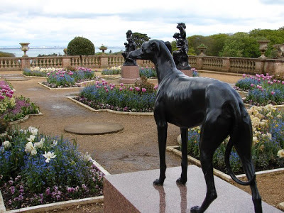 En los jardines de la Osborne House en la Isla de Wight, se encuentra una estatua de bronce de tamaño natural de un galgo negro con patas blancas y una raya blanca en su nariz. se trata de Eos, el perro favorito de Principe consorte Alberto.