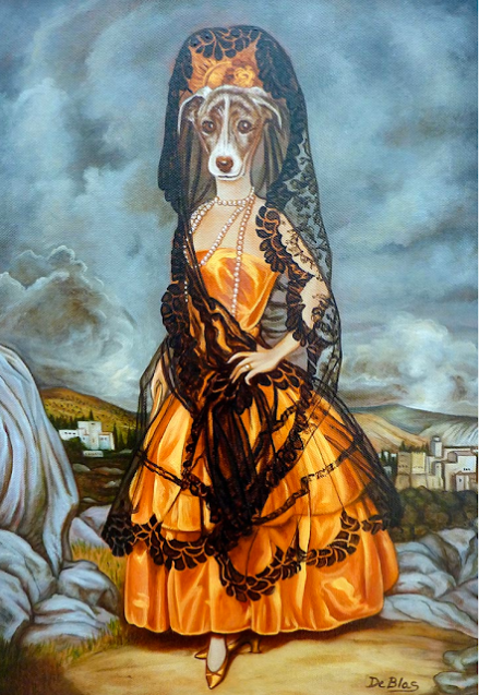 | Galguita con mantilla – Oleo sobre tabla – Francis De Blas |