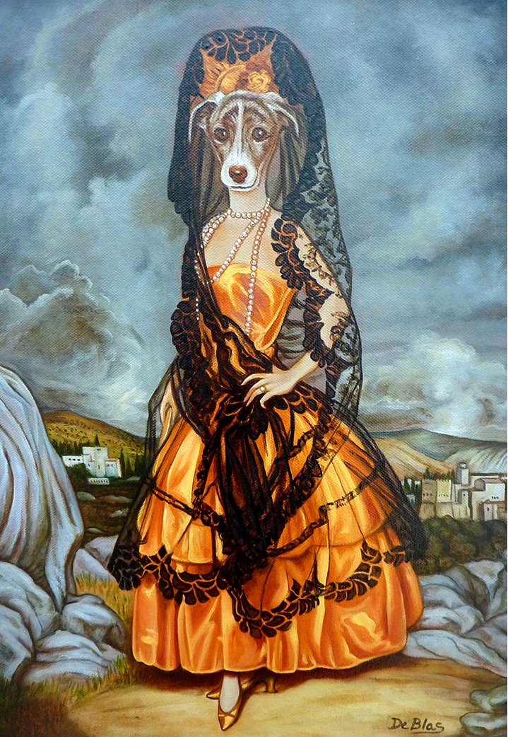 | Galguita con mantilla – Oleo sobre tabla – Francis De Blas |