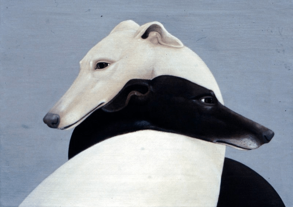 Así como por el tema, las pinturas de Whyn suelen ser reconocidas por las formas fuertes y altamente detalladas de animales dibujados, contrastando con los colores de fondo que se desarrollan en capas planas. Utiliza las formas y el simbolismo de los animales como narrativa, a veces introduciendo pistas en forma de pequeños objetos como joyas que cuelgan de los cuellos de los sujetos. Su trabajo se ha expuesto en Escocia, Inglaterra y EE.UU…