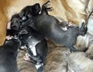 Esta es una cría MUY interesante ya que el padre es una «crema enmascaradora»: una crema pigmentada marrón. Este gen es un recesivo mendeliano sencillo según los criadores que lo han producido. Cuando está presente, enmascara TODOS los demás pigmentos y patrones excepto las manchas blancas. Altera el color a una crema muy pálida a oscura y cambia el pigmento de los ojos y la nariz a marrón. A veces, solo la cría identificará con SEGURIDAD de qué color es realmente la crema … como fue el caso en esta cría, ¡el criador estaba MUY sorprendido por la presencia de los cachorros azules!