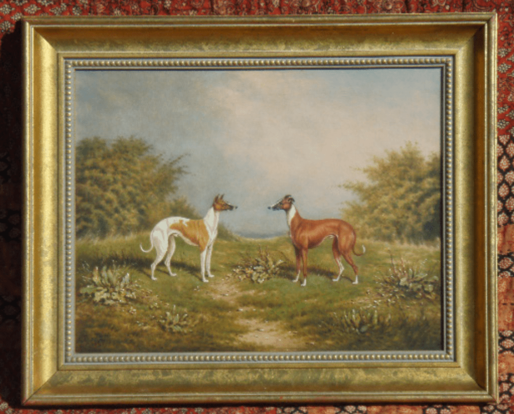 Aunque la palabra Whippet (o versiones de la misma) se registró ya en el siglo XVI, no significaba necesariamente lo que hace hoy. El Oxford Dictionary of English define al Whippet en 1550 como “una joven vivaz; una moza ligera”. Más tarde, la palabra llegó a ser utilizada para una “persona ágil, diminuta o insignificante”, en 1610 para “una pequeña raza de perro”, y ya en 1841, el Whippet fue descrito como “un perro criado entre un galgo y un perro de aguas”. Casi al mismo tiempo, en el continente europeo, una escuela de artistas conocida como les animaliers estaban esculpiendo exquisitos bronces de whippets y galgos italianos. Definieron claramente las diferencias entre las razas, que son mu- cho más variadas y sutiles que el simple tamaño, aun- que es cierto que un bronce particular de Pierre Jules Mêne (1810-1877) ha sido etiquetado alternativamente como Whippet y como galgo italiano. En los catálogos de venta de arte. Mêne fue uno de los escultores más talentosos de los animales ; su mejor trabajo ahora se vende por $ 10,000-15,000.