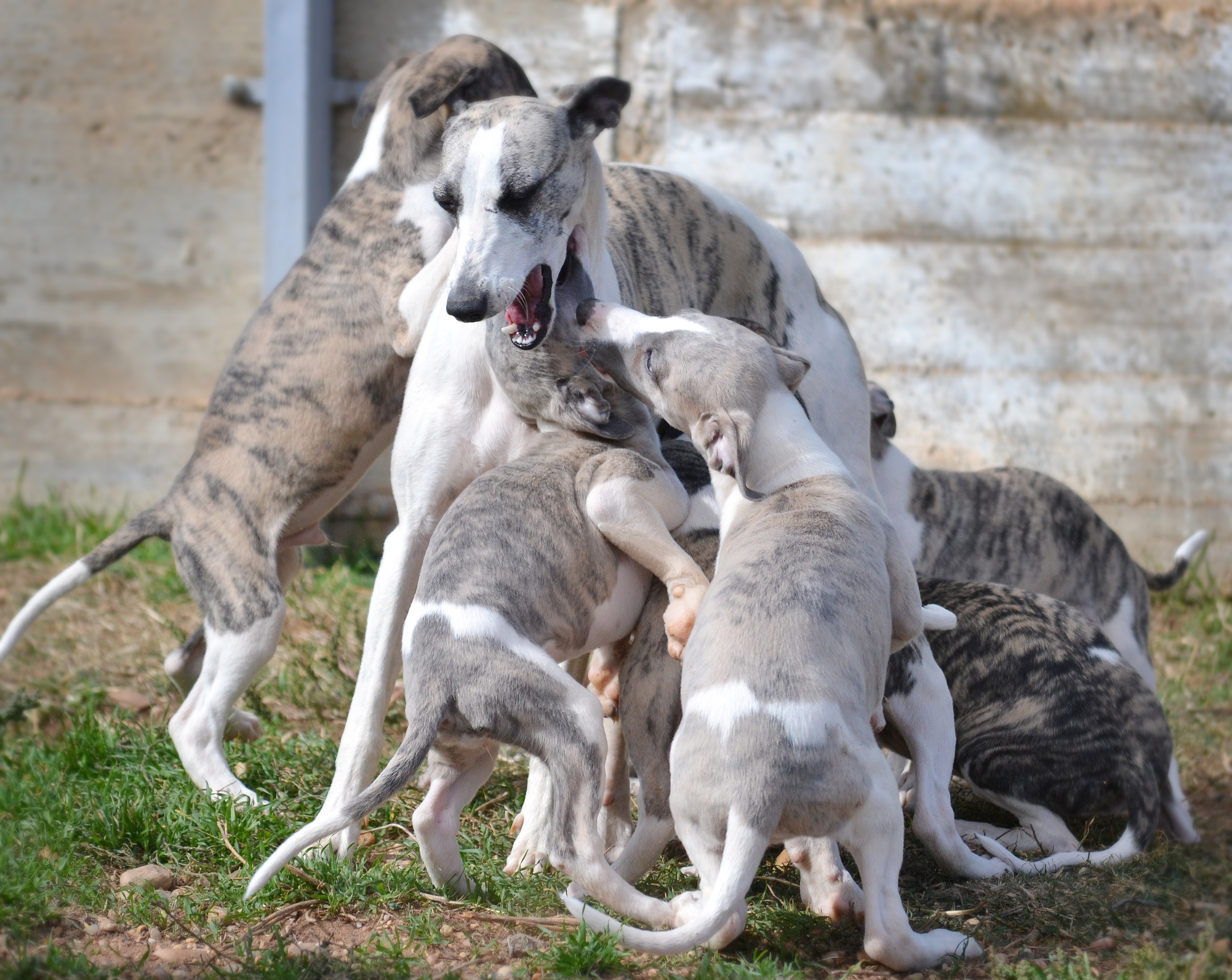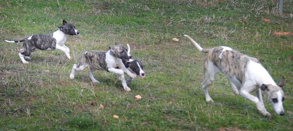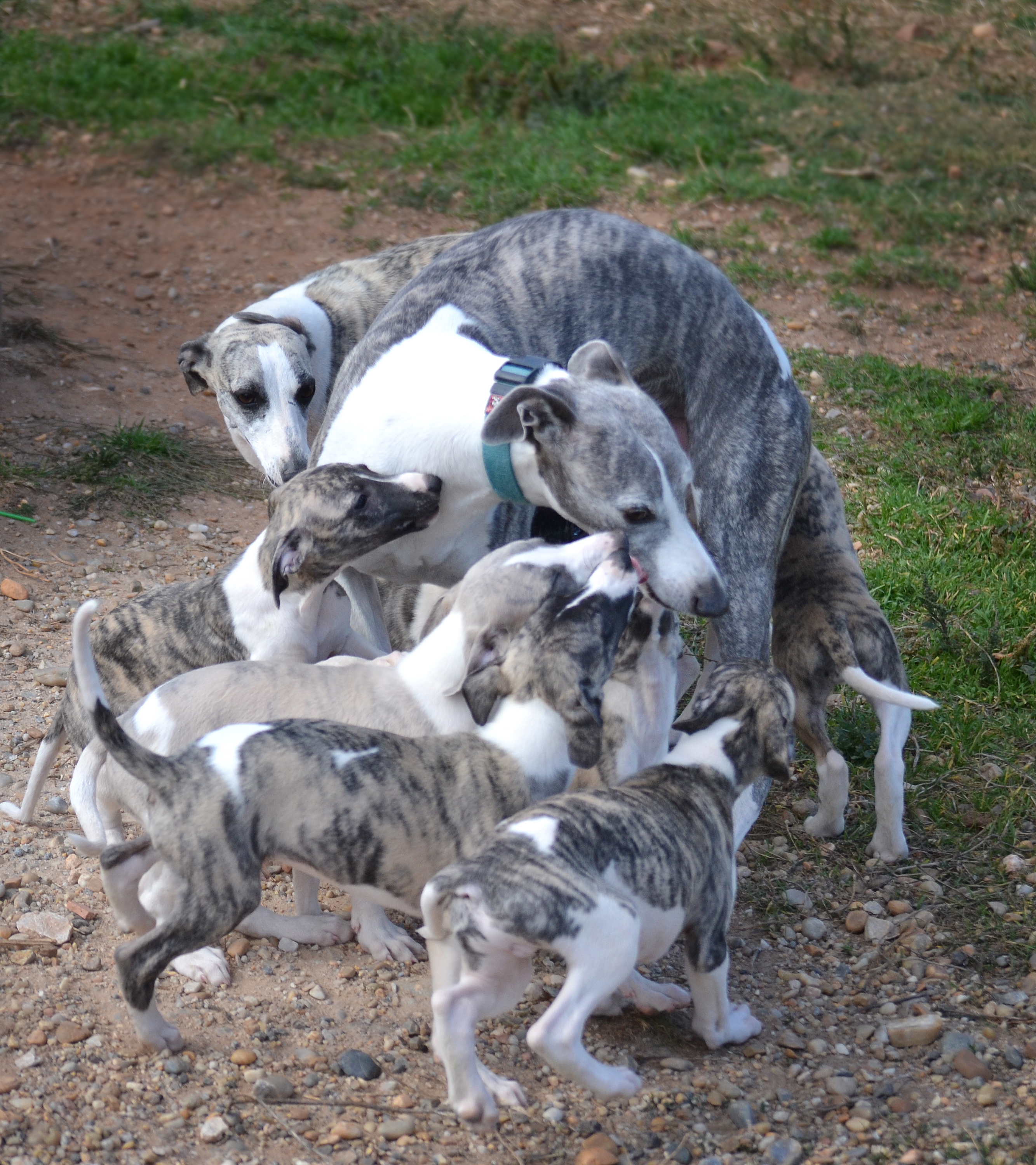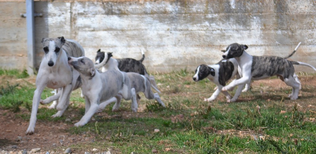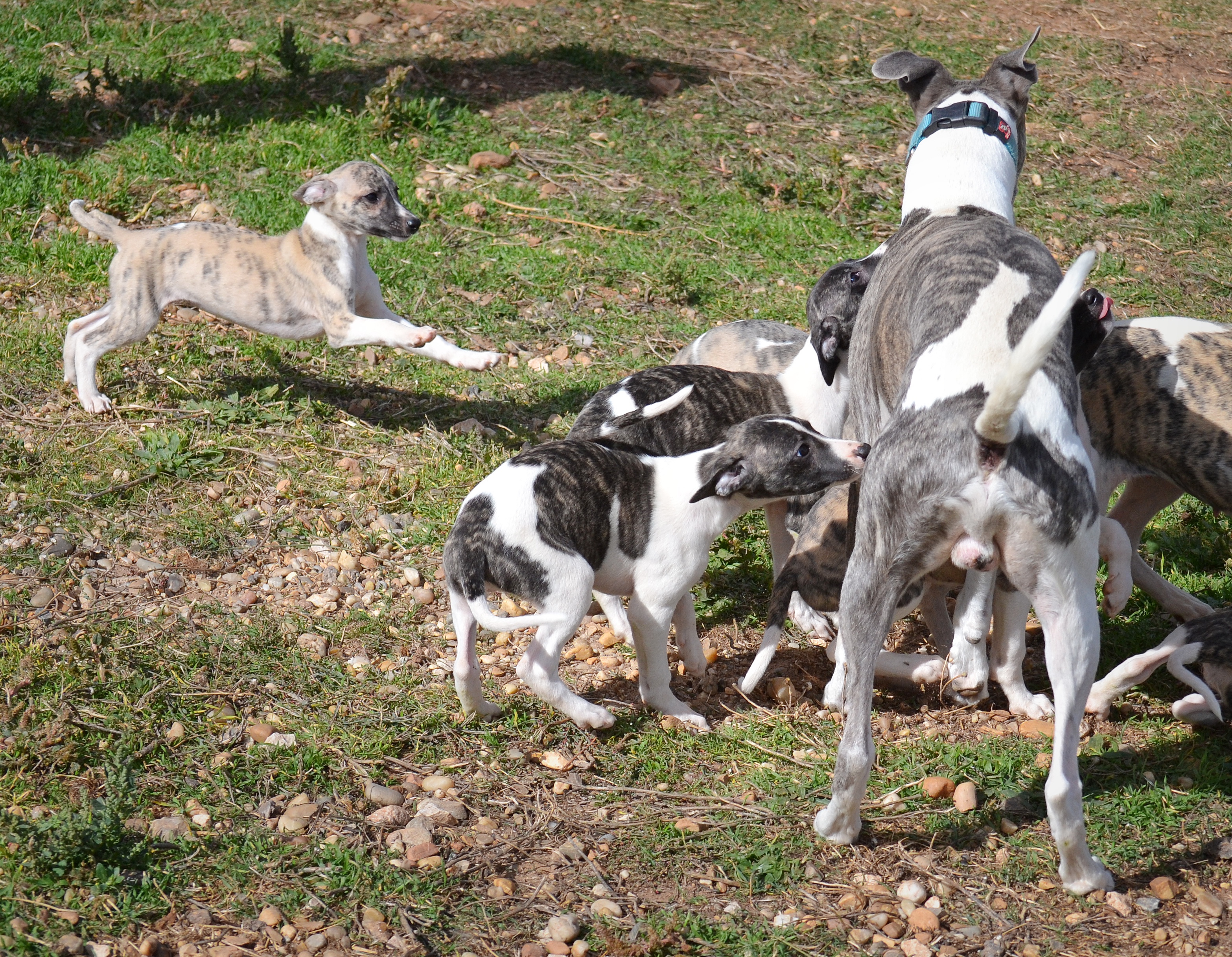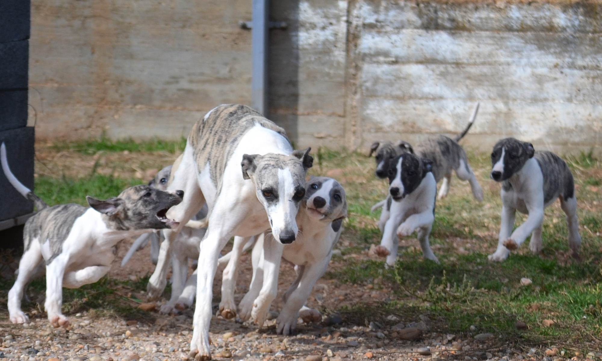 El pasado 14 de Octubre hicimos una visita a Marta y Jesús (Let’s Goo kennel), propietarios de la hembra que cubrió Tabú hace 4 meses. Pudimos ver a 9 cachorros felices y activos, que persiguieron y acorralaron a sus padres, jugaron y los mordisquearon. Fue un momento entrañable al poder ver y fotografiar a toda la familia completa.