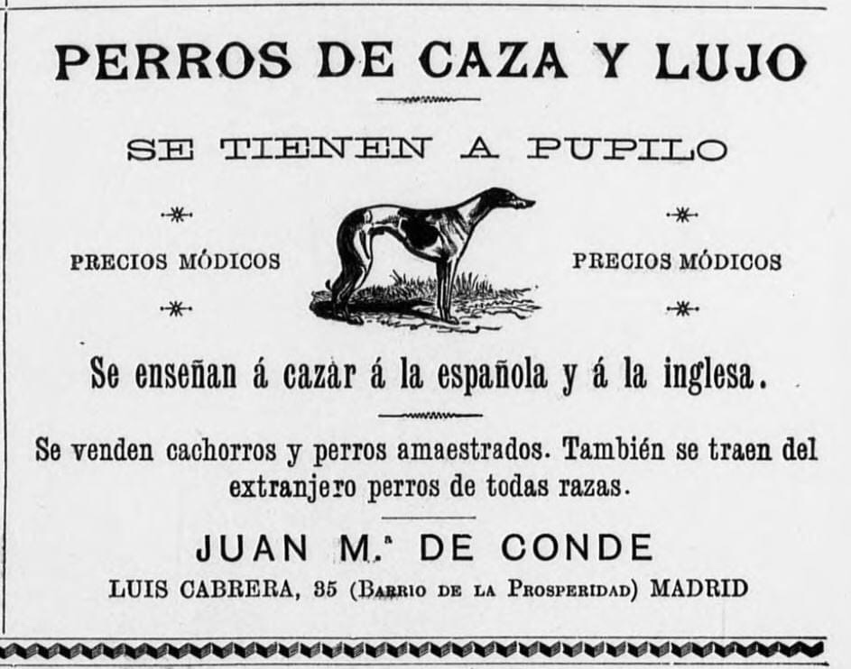 “La Epoca”, el 4 de Junio de 1890: “Al Vizconde de Irueste auxiliaba eficazmente el señor Conde en la tarea de inscribir, colocar y cuidar los perros, resultando todo el conjunto de la exposición de un gran atractivo”