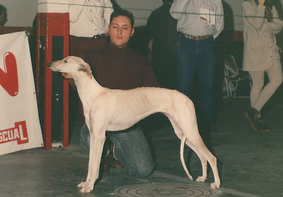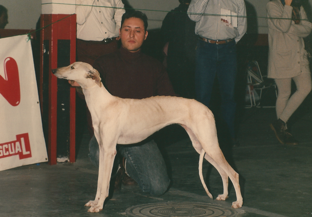 Con los galgos hice una camada muy consanguinea, «De Vil Espigat» x «CH Rayma Zalamera», del que nació el BIS cachorros del 1er dia en el World Dog Show de Milán 2000 «CH. Ukelele’s In-Pectore» propiedad de Domingo Chávez.